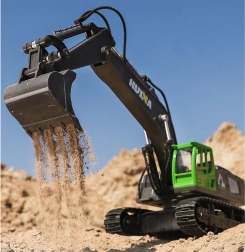 Acest excavator controlat de la distanță este un cadou perfect pentru micii constructori. Datorită șenilelor din cauciuc se poate deplasa în toate direcțiile și oferă o cabină rotativă la 360°, ceea ce permite un control ușor. Pachetul include telecomandă, care asigură control complet asupra excavatorului și o operare facilă a tuturor funcțiilor.