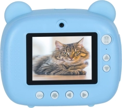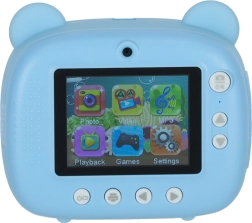 Un aparat foto instant pentru copii adorabil, în design de ursuleț albastru, care datorită imprimantei termice integrate tipărește imediat fotografii alb-negru. Are două obiective, înregistrează video 1080p, iar în pachet găsiți card de 32 GB, 3 role de hârtie, 6 markere și șnur pentru gât.