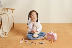 Oglinda, paleta de farduri, lacurile, rujurile, parfumul și pieptenele sunt din lemn și servesc drept imitație de cosmetice – ideale pentru machiaj sigur și plin de fantezie.