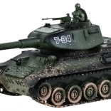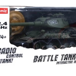 | Tancul are frecvență de 2,4 GHz, ceea ce permite rularea mai multor jucători simultan. Tancul este echipat cu efecte sonore și luminoase excelente. Este alimentat de o baterie reîncărcabilă. Bateria și încărcătorul pentru tanc sunt incluse în pachet. Cumpărați tancuri în culori diferite și puteți organiza o mare bătălie, inclusiv Marea bătălie de tancuri, la care poate participa oricine, indiferent de vârstă. Turela rotativă este echipată cu țeavă cu sistem infraroșu. După ochire și o lovitură precisă către celălalt vehicul, veți auzi un sunet realist al țintei lovite. Confirmarea loviturii stinge unul dintre cele patru lumini de pe tancul advers. După patru lovituri, vehiculul inamic va fi imobilizat timp de 15 secunde! Lupta este câștigată și puteți începe un nou joc de la început. Șasiul cu șenile imită perfect deplasarea unui tanc real. Controlul intuitiv al tancului nu creează dificultăți și este ușor de stăpânit după câteva încercări. Vehiculul depășește obstacole de până la 3 cm înălțime. Recul realist al vehiculului la tragere – la focul din tun se comportă pe câmpul de luptă ca un tanc adevărat. Are trapă deschizătoare pe turelă, în care putem plasa un șofer de tanc cu mitralieră. Control – vehiculul poate fi condus înainte, înapoi, poate vira la dreapta și la stânga și se poate roti pe loc precum un tanc real. - rază de acțiune până la aprox. 40 de metri, - timp de încărcare aprox. 4 ore, - viteză maximă până la aprox. 6 km/h, - tancul se poate roti la 360 de grade, în plus, turela controlată de la distanță se rotește până la maximum 320 de grade. - țeava situată în partea superioară a tancului se mișcă în sus și în jos. Efecte sonore: - sunetul funcționării motorului, - sunetul focului din tun. Efecte luminoase: - faruri frontale luminoase pe vehicul, - indicator electronic de stare pe partea din spate a vehiculului. | |