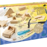 - 57 de piese din lemn, ciocănel, 50 de cuie, lipici, piesă din cauciuc pentru bătut în cuie, instrucțiuni ilustrate
