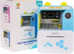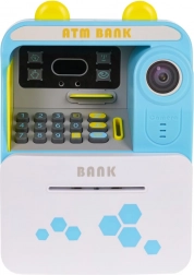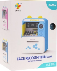 Bancomat interactiv pentru copii – pușculiță cu imitație de recunoaștere facială îi învață pe copii calculul, valoarea banilor și economisirea. Are margini rotunjite sigure, ecran digital, efecte sonore și voce în limba engleză. Se activează prin introducerea imitației de card de plată și oferă depunere, retragere, verificare sold și schimbare PIN. Pentru copii de la 3 ani.