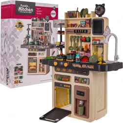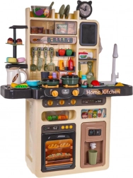 Acestă bucătărie spațioasă pentru copii transformă camera într-un mic atelier gastronomic. Copiii se vor bucura de elemente realiste precum arzătoare iluminate cu sunete de prăjire și fierbere, abur de la unul dintre arzătoare și robinet cu apă curgătoare. Deschideți cuptorul, depozitați alimentele în frigiderul cu dozator de apă, rotiți butoanele de control și aprindeți hota cu panou muzical.