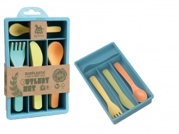 Suportul de tacâmuri din bioplast de calitate conține un set complet de tacâmuri pentru patru persoane, ceea ce îl face alegerea ideală pentru clienții conștienți ecologic.