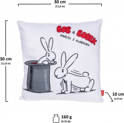 Perna pentru copii BOB A BOBEK 30 × 30 cm îi va încânta pe toți iubitorii iepurilor legendari din pălărie. Microvelurul catifelat este blând cu pielea copiilor, imprimarea de calitate cu motivul „face exerciții” își păstrează culorile mult timp, iar umplutura din fibră goală este ușoară și își păstrează bine forma.