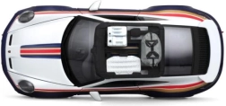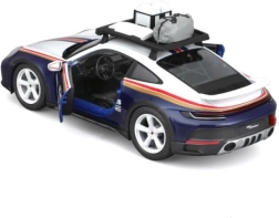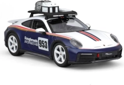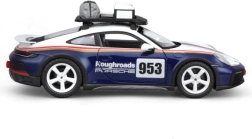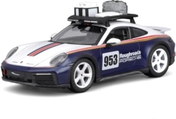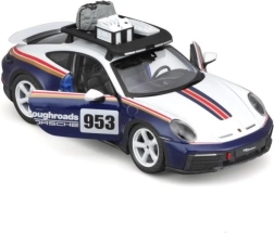 Fă bucurie ție sau copiilor cu modelul realist Porsche 911 Dakar la scara 1:24. Acest model die-cast în combinația de culori albastru, alb și dungi roșii impresionează prin proporții precise, embleme Roughroads și iconicul număr 953. Construcția metalică împreună cu detaliile din plastic asigură durabilitate și fidelitate față de original.
