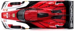 Vopsirea roșu‑alb cu numărul 5 și logourile sponsorilor reflectă fidel mașina de curse reală PORSCHE 963.