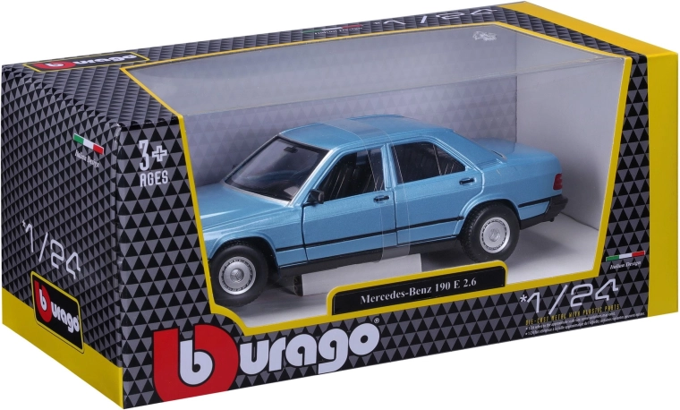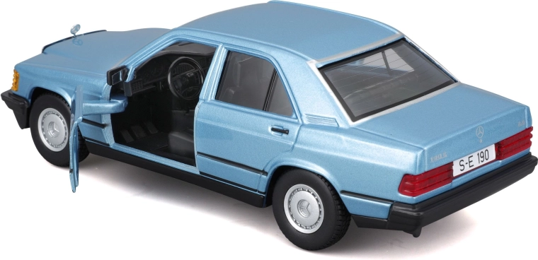 Sedanul emblematic al anilor ’80, sub forma unui model din metal la scară 1:24. Acest MERCEDES-BENZ 190 E realizat în detaliu impresionează prin caroseria realistă în nuanța Diamond Blue, elementele funcționale și execuția precisă pentru colecționari și pasionați. Caroserie metalică, uși care se deschid, roți care se rotesc liber și detalii autentice ale interiorului și șasiului asigură experiența fidelă a legendei W201.