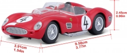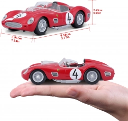 Dimensiune ideală pentru aranjamente de colecție. Modelul este ușor, durabil și se potrivește perfect cu alte mașini din seria Ferrari Racing.