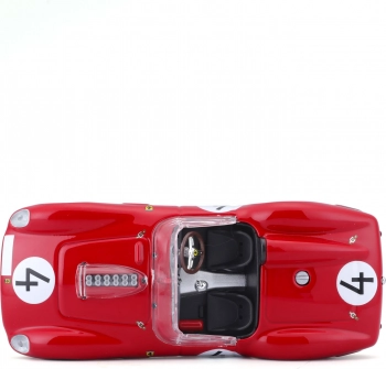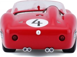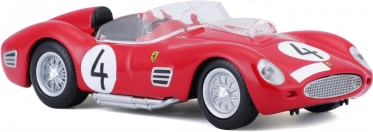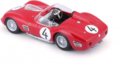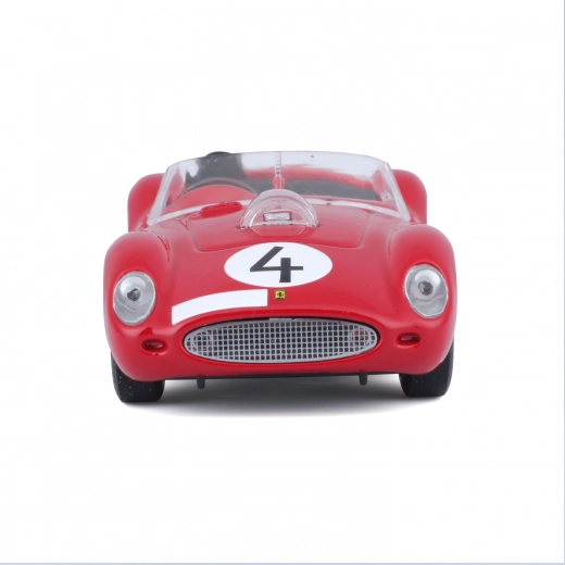 Modelul este realizat din metal turnat (die-cast) cu elemente din plastic pentru detalii fine. Datorită caroseriei fidele, interiorului bine lucrat și rulării line a roților, arată excelent și se deplasează bine pe suprafețe netede. Este inclusă cutia originală Ferrari Racing pentru depozitare sigură și expunere.