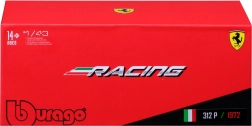 Cutie atractivă cu sigla Ferrari și modelul 312 P/Ferrari Racing, pregătită pentru a fi oferită cadou și pentru depozitarea în siguranță a modelului.