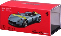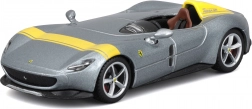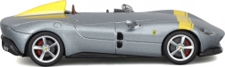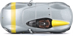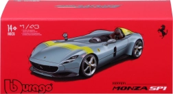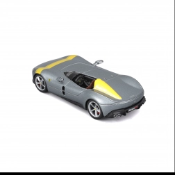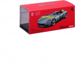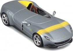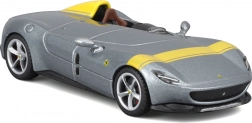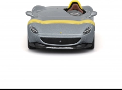 Acest model metalic detaliat de la BBURAGO, la scara 1:43, redă fidel iconicul single-seater Ferrari Monza SP1. Culoarea argintie metalizată cu accente galbene, discurile de roți realiste, etrierele de frână și oglinzile modelate cu precizie subliniază aspectul premium, care iese în evidență pe orice raft.