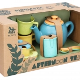 Setul include tot ce este necesar pentru un mic serviciu de ceai: de la ceainic cu capac până la farfurii, cești și lingurițe. Datorită materialului ușor și sigur, este potrivit pentru copii de la 3 ani și se întreține ușor curat.