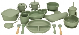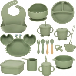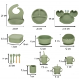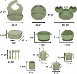Acest set de 19 piese de veselă din silicon verde este conceput ținând cont de siguranța și confortul copiilor dvs. Datorită silikonului durabil fără substanțe nocive, aceste produse sunt ideale pentru gurile delicate ale copiilor. Culoarea și designul fac fiecare masă distractivă și sprijină dezvoltarea abilităților manuale.