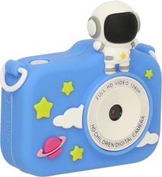 Aparatul foto digital pentru copii, de culoare albastru, oferă o combinație distractivă de aparat foto și cameră video potrivită micilor fotografi. Ecranul său TFT de 2 inch permite vizualizarea ușoară a imaginilor și videoclipurilor capturate, care pot ajunge la o rezoluție de până la 1440x1080.