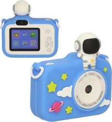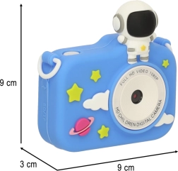 Acest aparat foto suportă carduri de memorie SD de până la 32 GB, ceea ce înseamnă suficient spațiu pentru stocarea amintirilor. Pachetul include un card de memorie SD, astfel încât copiii pot începe imediat să fotografieze și să filmeze. Cureaua atașată și carcasa durabilă din cauciuc cu motiv astronaut asigură siguranța dispozitivului în caz de căderi.