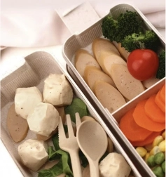 Această cutie de prânz este împărțită în două părți separate, partea superioară cu o capacitate de 350 ml și partea inferioară cu o capacitate de 400 ml, permițând depozitarea separată a diferitelor feluri de mâncare fără a amesteca gusturile și aromele.