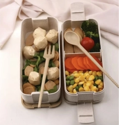 Pachetul include și set de tacâmuri din paie de grâu. Aceste instrumente practice includ o linguriță și o furculiță cu margine ondulată pentru utilizare ca și cuțit. Tacâmurile se depozitează ușor în cutia de prânz, asigurându-vă că le aveți mereu la îndemână.