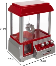 CONTROL ȘI MECANISM DE PRINDERE A BOMBOANELOR - Mașina de prins bomboanefuncționează ca un automat real.Pe partea frontală a jucărieise aflătrei joystick-uri din PS durabil, carepermit controlul complet al ghearei.Primul joystick mișcă mecanismul înainte și înapoi, cel din mijloc la dreapta și la stânga, iar al treilea coboară și ridică gheara de oțel,fixată de portal cu un lanț robust cu zale. Întregul proces de prindere a bomboanelor esteexcepțional de cursiv și realist, iar bucuria de a prinde bunătățile preferate este amplificată de emoția distractivă.După prinderea bomboaneiaceasta este aruncată cu îndemânare îndeschiderea iluminată în roșu, ceea ce adaugă un plus de distracție jocului.