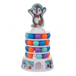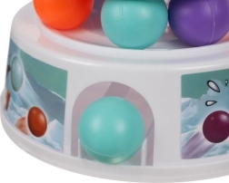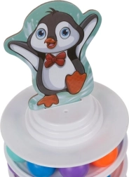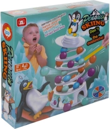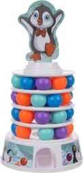Construiți un turn stabil, așezați în fiecare nivel 9 biluțe colorate, fixați inelul de margine și plasați deasupra cupola cu pinguin. Jucătorii, pe rând, învârt ruleta și, în funcție de culoarea indicată, folosind bețișoarele extrag biluțele astfel încât turnul să nu se prăbușească. Biluțele cad în interior și ies prin orificiul din bază – tensiunea crește cu fiecare mutare!