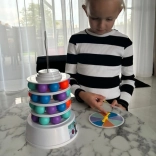 Datorită materialului PS de calitate, piesele sunt ușoare, dar rezistente, inelele și bețișoarele sunt prelucrate cu precizie, iar jocul este sigur pentru copiii de la 3 ani sub supravegherea unui adult. Culorile vii susțin recunoașterea culorilor, iar întreaga mecanică antrenează excelent motricitatea fină și răbdarea.