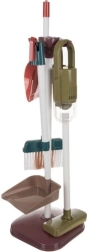 Suport pentru ustensile - Setul include și un suport stabil cu bază lată, care găzduiește peria pentru vase, măturica, fărașul și mătura mare cu făraș vertical. Aspiratorul poate fi de asemenea atârnat pe suport, astfel încât toate accesoriile să fie depozitate ușor într-un singur loc. În acest fel copiii învață să-și organizeze și să-și ordoneze spațiul de lucru. Toate piesele sunt fabricate din material PP de calitate și durabil, asigurând rezistență și siguranță în timpul jocului.