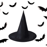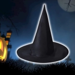 Pălăria de vrăjitoare neagră, bine realizată, este accesoriul ideal pentru costum de vrăjitoare, vrăjitor sau magician. Forma clasică conică, cu bor larg, creează un efect pronunțat și dramatic, care iese în evidență atât în fotografii, cât și pe ringul de dans.