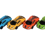 Fiecare mașinuță are dimensiuni compacte de 16 × 8 × 4 cm, perfecte pentru mână. Setul oferă patru culori atrăgătoare (albastru, galben, portocaliu, verde), astfel încât copiii pot organiza propriile curse și colecții de modele.