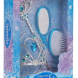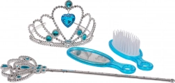 Un set fermecător pentru micile prințese de la 3 ani care va încânta orice iubitoare de basme. Include o tiară, o baghetă magică, o oglindă și o perie de păr cu decorațiuni delicate albastre. Execuție sigură, materiale de calitate și detalii sclipitoare magice care stimulează imaginația și jocurile de rol.