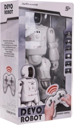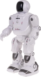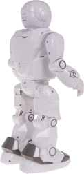 Robot controlat prin telecomandă, cu funcție de control manual. Jucăria este potrivită pentru copii de la 5 ani. Robotul este fabricat din plastic de înaltă calitate și este complet sigur pentru cei mici. Robotul este controlat cu o telecomandă RC inclusă în set sau cu mâna, în modul de detectare a mișcării. .. Robotul se pornește și se oprește printr-un buton pe partea frontală. Funcțiile telecomenzii includ deplasarea și mersul în toate direcțiile, dansul și posibilitatea programării mișcărilor robotului într-o succesiune personalizată. Modul de control manual al robotului este activat cu butonul superior din centrul jucăriei. Senzorul de mișcare este amplasat sub buton. În acest mod, robotul se deplasează înainte-înapoi-dreapta-stânga. După 2 minute de inactivitate, robotul intră în modul standby. Robotul este alimentat de 4 x baterii AA 1,5V (nu sunt incluse), iar telecomanda este alimentată de 2 x baterii AAA 1,5V (nu sunt incluse). .. Specificații: . Robot controlat prin telecomandă pentru copii de la 5 ani, .- funcții de mers, deplasare, dans controlate din telecomanda RC, .- funcție de programare a secvenței de mișcări ale robotului, .- posibilitate de control prin mișcarea mâinii (în față-înapoi-dreapta-stânga), .- brațe robotice mobile manual, .- afișaj digital pe capul robotului, .- efecte sonore la fiecare mișcare. . |