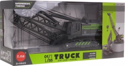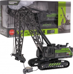 Această macara negru‑verde combină piese metalice robuste cu funcții realiste care stimulează imaginația și motricitatea fină. Copiii pot controla ușor manual brațul, pot coborî sau ridica cârligul și pot roti cabina, ca la o adevărată mașină de construcții.