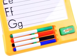 Setul include markere speciale care se pot șterge ușor – ideale pentru scriere creativă și repetată. Produsul este potrivit atât pentru utilizare acasă, cât și în grădiniță, și este ideal pentru copiii care abia încep să învețe să scrie.