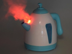 Cana este dotată cu un buton care pornește simularea fierberii apei cu sunete realiste și o indicație LED roșie.
