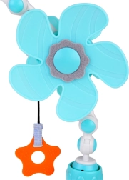 Stea din silicon ca și inel de dentiție cu proeminențe pentru masajul gingiilor și o frunză ca foșnitoare. Lungimea barei de jucărie este de aproximativ 72 cm fără cleme și cu cleme aproximativ 84 cm.
