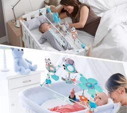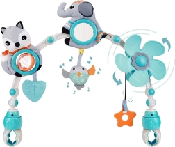 Această bară de jucărie suspendată frumoasă și funcțională este un accesoriu ideal nu doar pentru pătuț, ci și pentru cărucior sau scaunul auto. Are elemente colorate și interesante care atrag atenția copilului, îl ajută să se calmeze și îi trezește curiozitatea. Bara suspendată conține elemente ca inel de dentiție, componente sonore și rotative. Deține, de asemenea, cleme solide și flexibile care facilitează montajul pe diverse suprafețe.