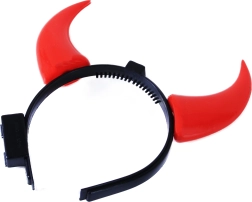 Bentiță luminoasă grozavă cu coarne de diavol, care, la apăsarea butonului, clipește. Include 3× baterii LR44, astfel încât o puteți folosi imediat. Ideală pentru carnaval, serbarea de Crăciun și petreceri tematice. Potrivită de la 3 ani.