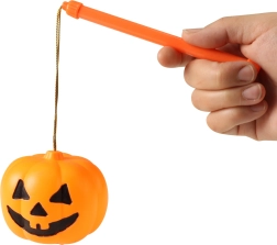 Creați acasă și la petreceri adevărata atmosferă de Halloween cu un dovleac luminos cu mâner. Dovleacul din plastic, cu dimensiunea de aproximativ 10 cm, se controlează ușor cu ajutorul unui comutator și este gata de utilizare, deoarece include deja 3× baterii AG13/LR44. Decorațiune ideală și jucărie doar cu efect luminos pentru copii de la 3 ani.