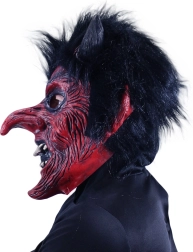 Trăsături pronunțate, culoare roșie, coarne și dinți ascuțiți îți garantează că vei ieși în evidență la Halloween sau la carnaval.
