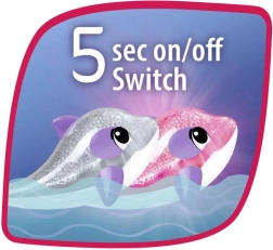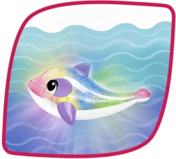 Acest delfin este îndrăgit datorită corpului său mov acoperit cu un strat strălucitor argintiu. Un senzor sub aripioara caudală permite delfinului să lumineze în culori curcubeu la fiecare atingere. Delfinul scânteietor este minunat nu doar pentru joacă, dar și ca jucărie de baie, deoarece poate pluti pe suprafața apei și lumina sub apă.