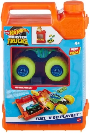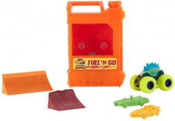 Pătrundeți în aventuri epice cu setul de joacă Hot Wheels Monster Trucks Canistru Fuel 'N Go! Acest set delicat proiectat în formă de canistru de benzină se deschide într-o mini arenă pentru cascadorii și o zonă de reparații. Cu vehiculul inclus Motosaurus la scară 1:64, poți ușor urca pe rampă și lovi două mașini avariate. Alte vehicule și camioane cresc nivelul distrugerii! (Setul include două mașini avariate. Alte vehicule din imagini se vând separat.)