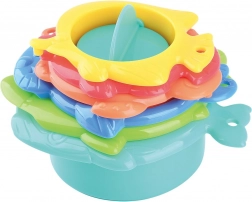 Setul de cupe pentru baie PLAYGO aduce o distracție simplă, dar foarte îndrăgită la ora băii. Copiii pot lua și turna apă și pot urmări cum, la cea mai mică cupă, se învârte moara de apă.