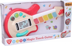 Descoperiți primele pași muzicali cu chitara electrică tactilă PLAYGO. Datorită senzorilor tactili de pe gât și corp, instrumentul reacționează la o atingere ușoară și redă note individuale. Efectele luminoase completează experiența, în timp ce butoanele clare permit schimbarea melodiilor, distorsiunii și volumului.
