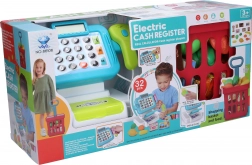 Stimulați imaginația copiilor și jocul de-a vânzătorul și clientul cu acest set complet de casă de marcat și cărucior de cumpărături. Datorită efectelor luminoase și sonore autentice, jocul devine și mai realist, iar copiii își dezvoltă abilitățile de comunicare, calculele și motricitatea fină.