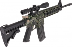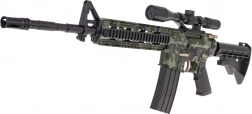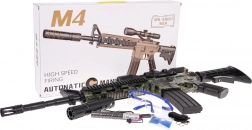 Marea pușcă militară M4 pentru bile de gel este destinată copiilor de la 14 ani. Se recomandă utilizarea cu bile hidrogel speciale, care se sparg spectaculos la impact și sunt sigure pentru copii. Setul conține un săculeț cu bile nehidratate. Bilele se pregătesc prin acoperire cu apă și lăsate să se mărească în volum aproximativ 4-6 ore. Apoi se scurge apa în exces și muniția este gata. La acest model ar trebui folosite bile cu diametrul de aproximativ 7-8 mm. . Puștile sunt echipate cu regim de tragere manual și automat. Ținta este prevăzută cu lupă, iar distanța țintei poate fi reglată cu ajutorul unei rotițe. Pachetul include accesorii precum țeavă, amortizor, încărcător, sticluță și ochelari de protecție. Jucăria este alimentată de o baterie de 7,4V inclusă în set. .. Specificații: . - jucărie pușcă M4 cu accesorii, .- posibilitatea de a asambla părți mobile precum țeava, amortizorul, încărcătorul, sticluța, .- posibilitatea montării unei ținte cu lupă și reglarea măririi, .- regim de tragere manual sau automat, .- livrat cu săculeț de bile hidrogel, .- bilele hidrogel se sparg la impact și utilizarea lor este sigură, .- reproducere fidelă a unei puști reale, .- destinat copiilor de la 14 ani, .- instrucțiuni de asamblare incluse în pachet. . |