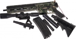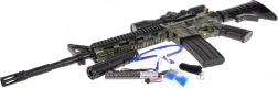 - pușcă, .- încărcător, .- țeavă, .- amortizor, .- țintă cu colimator, .- sticluță, .- cablu USB, .- baterie 7,4V, .- săculeț cu bile pentru pregătire, .- șnur pentru gât, .- ochelari de protecție, .- manual în limba engleză, .- ambalaj color. . |