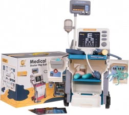 Oferiți-le copiilor o joacă realistă de-a medicul cu acest cărucior mobil, care include echipare bogată și multe funcții. Monitorul EKG redă sunetul bătăilor inimii și alarma, iar cardurile cu radiografii interschimbabile sunt incluse. Stetoscopul redă bătaia inimii, iar termometrul are iluminare și sunet de măsurare.