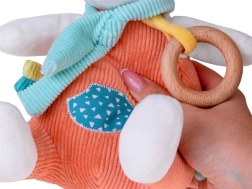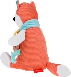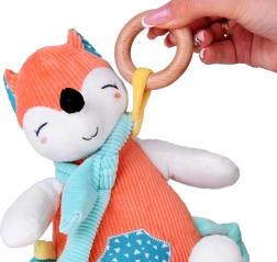 Vulpița include un inel din lemn, care nu doar arată estetic, ci este și plăcut la atingere și complet sigur pentru copil. În interiorul jucăriei este plasat un clopoțel delicat, care la fiecare mișcare emite sunete atenuate, stimulând simțurile copilului și atrăgându-i atenția.