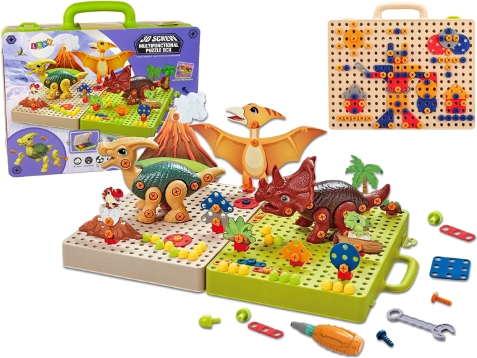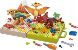 Acest set permite copiilor să-și construiască propriile modele de dinozauri, pe care le pot personaliza după propria imaginație.