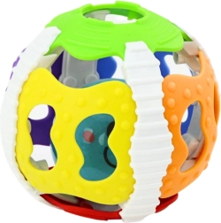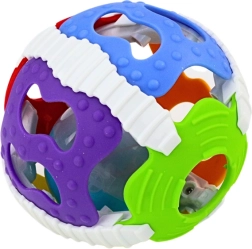 Atractia principală a mingii este bila de plastic din interior care reacționează la mișcarea copilului. La manipularea mingii, aceasta emite sunete și lumini, captând atenția copilului și stimulând simțurile sale auditive și vizuale. Aceste efecte interactive nu doar distrează, ci ajută și la dezvoltarea percepției senzoriale și a coordonării motorii ale copiilor mici.