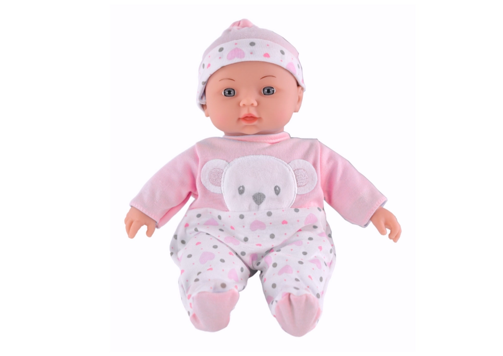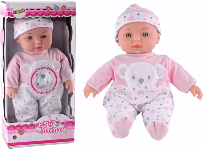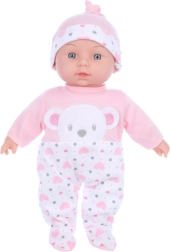 Pijama roz pentru păpuși cu sunete de ursuleț și căciuliță